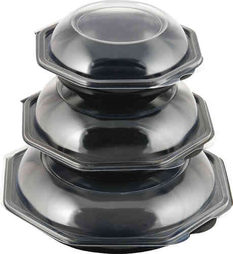 Les boites sont empilables, aussi bien vides qu’une fois remplies. Un avantage lorsqu’il faut économiser de l’espace dans la cuisine et gagner du temps lors du service.